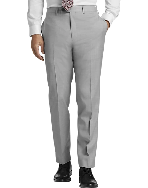 This Calvin Klein X-Fit suit coat stands out in a light gray sharkskin. It features fine wool fabric that has a touch of stretch for comfort. Suit separates let you choose pant and coat sizes separately for an ideal fit.
