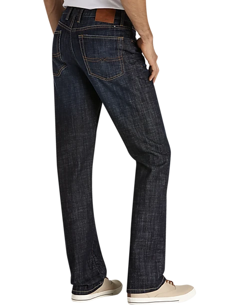 These Lucky Brand jeans feature a dark blue wash with whiskered details and classic five-pocket styling. Contrast stitching throughout and embellished back pockets complete their timeless look.