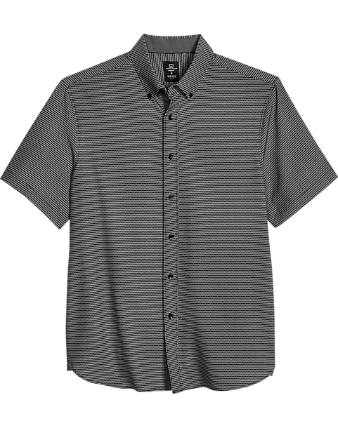 Michael Strahan Modern Fit Four-Way Stretch Short Sleeve Sport Shirt, Black Geometric
