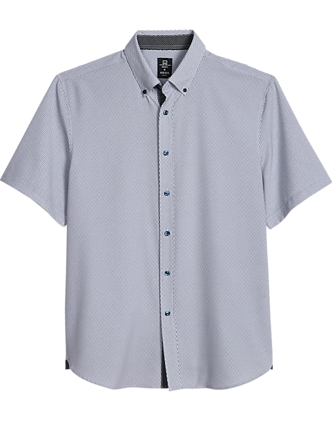 Look your best in comfort with this short sleeve sport shirt by Michael Strahan. Featuring a cool and comfortable poly blend fabric with four-way stretch this fine shirt has a sharp button-down collar and trim Modern Fit.