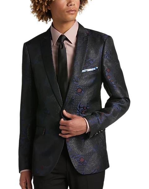 Make a chic, sophisticated statement with this finely crafted dinner jacket by Paisley & Gray. Featuring cool jewel tones woven into an intriguing floral pattern, it is tailored with a streamlined Slim Fit to offer a sleek, modern look for your next special occasion.