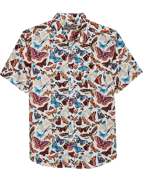 A multitude of butterflies adorns this fresh and fun sport shirt by Paisley & Gray. This standout style has a spread collar, short sleeves and a trim, Slim Fit.